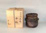 上野焼鉄釉たたき水指