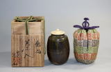 飴釉茶入(虫喰蓋)