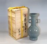 天青磁耳付花瓶