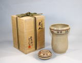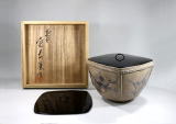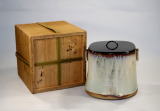 井戸釉四方水指(塗蓋替付)